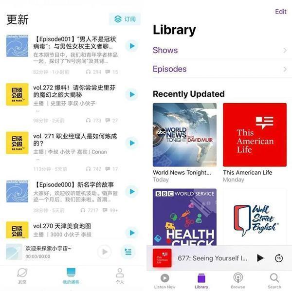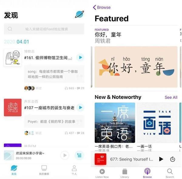 小宇宙“发现”和Apple Podcast “Browse”对比