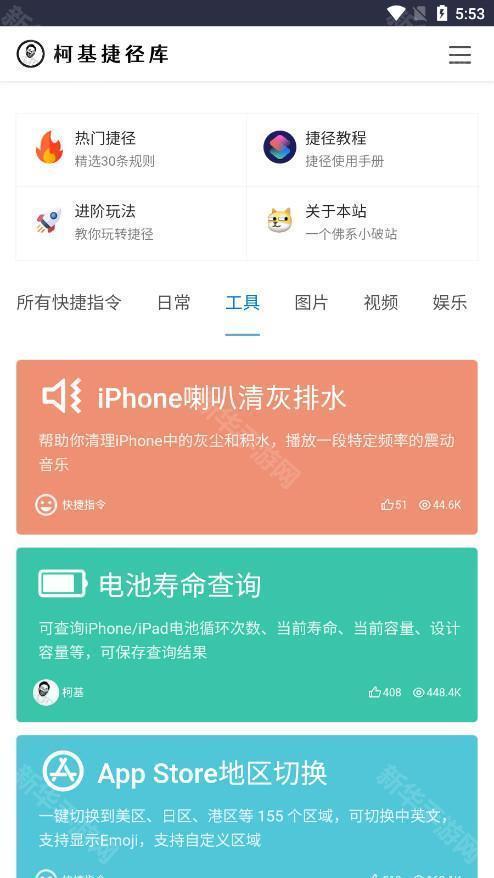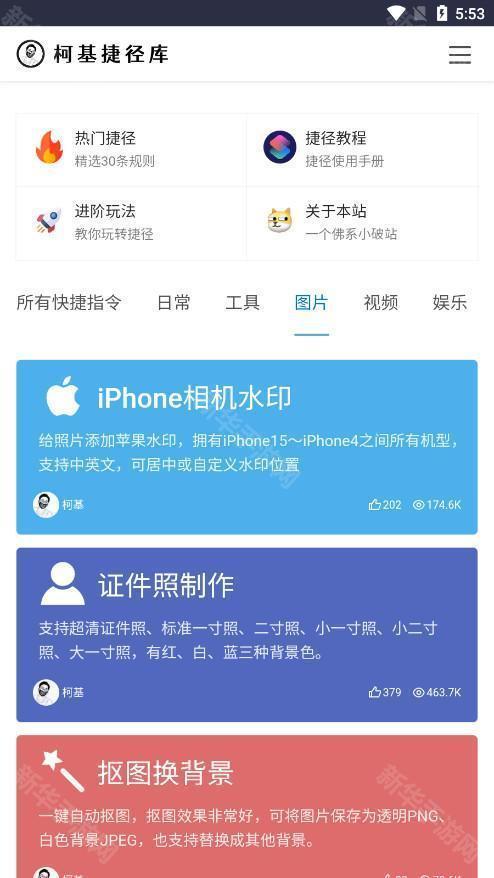 《柯基快捷指令库》这款软件为大家带来非常好用的各种手机快速指令,用户可以快速完成一些繁琐的操作,提高工作效率和生活便利性。提供方便快捷控制中心,用户可一键达到常用功能,根据用户使用习惯,软件智能推荐相关快捷方式,提高用户使用效率。而且在柯基快捷指令库里面还为用户们进行捷径命令精选,在其中发现许多优质捷径,获得优质使用体验,快来下载试试吧!