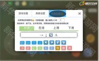 确认好技能释放按钮后,在手势技能设置框内输入不同按键,例如:→↓↘A
