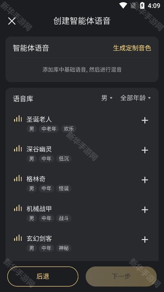 9、在这里就可以创建智能体的语言了,完成之后点击“下一步”。