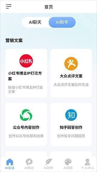 2、点击右上角的AI助手,能帮助用户生成各大平台的营销文案