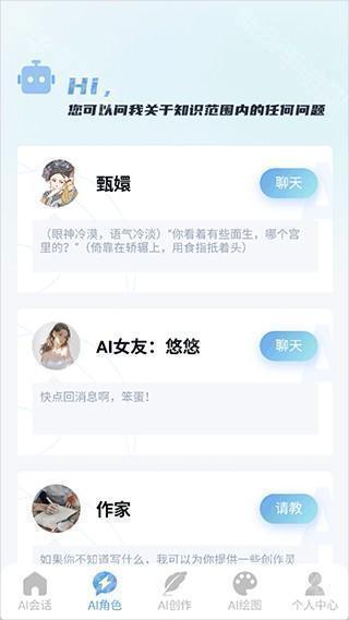 3、在AI角色界面,用户可以和角色聊天