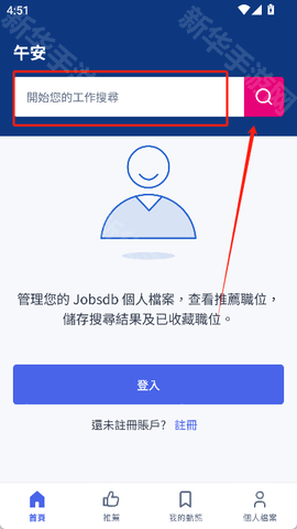 打开之后你可以选择“登录”账号,也可以直接“搜寻职位”
