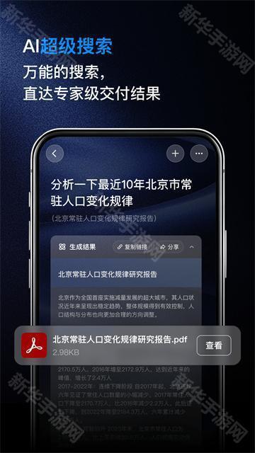 搭载数十种智能工具,在写作、分析、翻译、旅行计划等方面能以一半的效率翻倍,成为你工作和学习生活的好帮手。输入关键字或内容:在搜索框中输入关键字或选择相应内容进行搜索。支持文字、声音、照片、视频等多种搜索方法,随时随地满足您的搜索需求,智慧无穷。