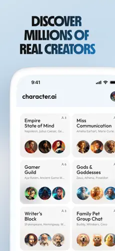 现在,您可以给我们数百万个用户创建的角色库中的任何角色打电话或发短信,或者轻松创建您自己的角色。将任何角色与我们用户创建的语音库中的任何语音配对,或在几秒钟内创建您自己的语音。