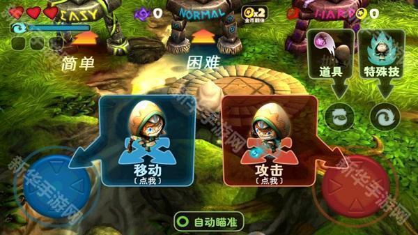 1.游戏操作简单,使用自动瞄准。当森林中的小怪物进入射击场时,它会自动向目标射击。