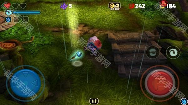 奇幻射击这款游戏的奇妙之处在于它的子弹是无限的,玩家可以在游戏开始之后就按住右下角的射击键不放,游戏可以自动对准怪物进行射击,玩家只需要左手控制方向即可。