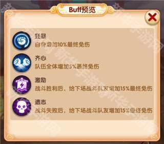遗置:战斗失败后,给下场战斗队伍增加15%最终免伤