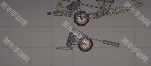 3、需要注意的是,这种不稳定的结构一定要加上支柱,即机头中间的长铁块,调成无重力不碰撞,链接到机头外壳即可