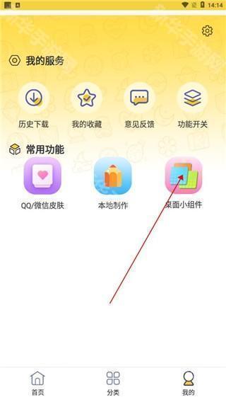 2、进入我的页面,找的桌面小组件选项点击进入。