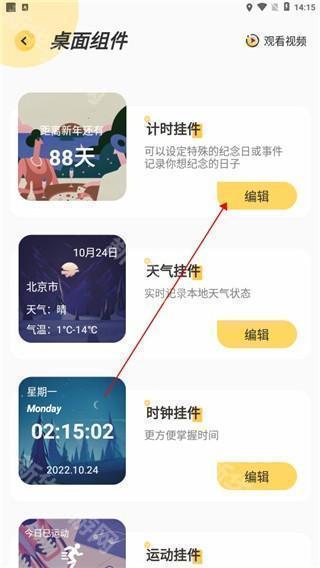 3、选择需要的桌面小组件点击编辑进入编辑页面。