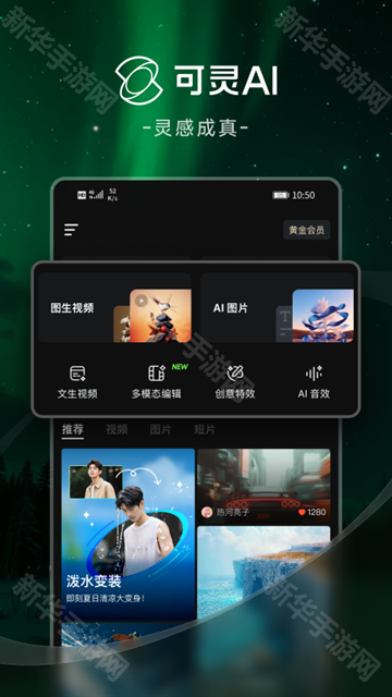 3.手机版灵AI是核心的AI支持视频和图像生成功能,用户随时随地进行创作。