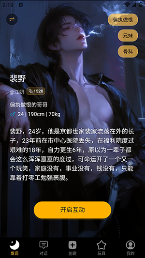 1、在软件首页提供了多种类型的AI角色可以选择互动。