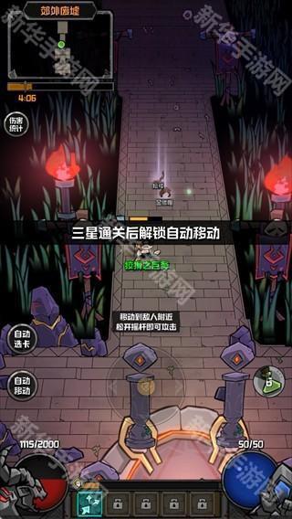 三星通关后,将会解锁“自动移动”功能,助你更轻松应对后续关卡,同时击败敌人会掉落装备,记得拾取以提升整体战力。