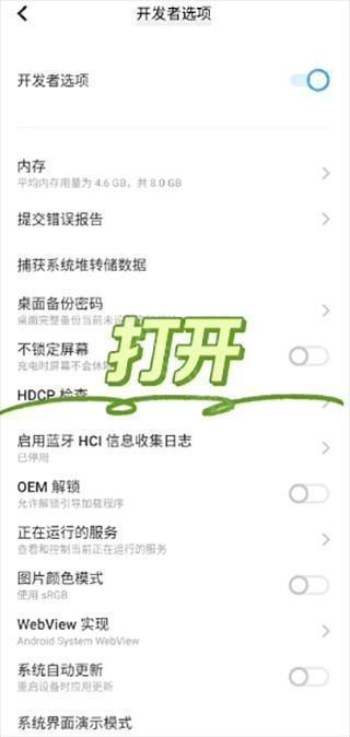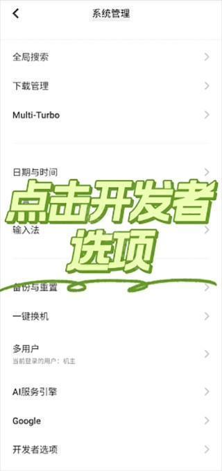 9、接下来将开发者选项打开;