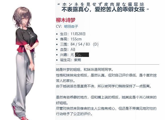 柳木诗梦:不爱说真心话,喜欢挖苦别人的奇怪女孩。