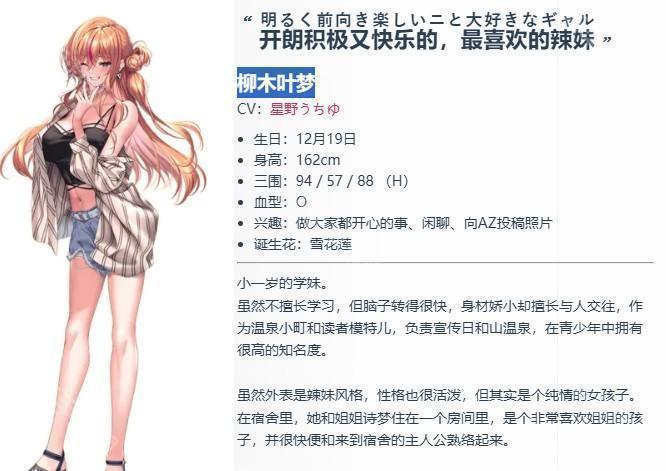 柳木叶梦:又积极又开朗,喜欢让人快乐的事的辣妹。