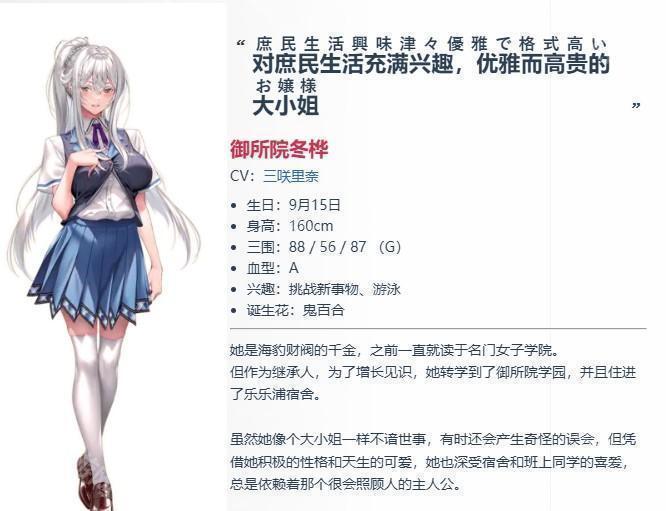 3号女主御所院冬桦,是知名集团的千金大小姐。