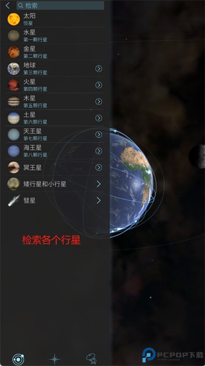 2、点击左边搜索按钮,用户可以搜索自己感兴趣的星球进行查看。