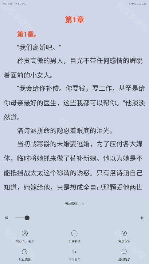 3.进入听书界面,你可以设置语速、发音、定时等操作。