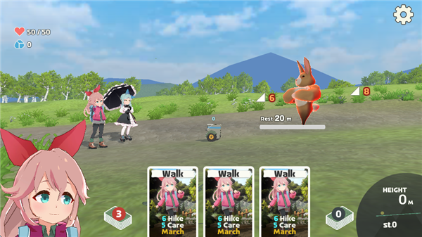 《山札二合处》这是一款卡牌策略类型的游戏,游戏由“KPC”工作室出品,玩家将扮演几位少女登山者,因为临时起意,开始挑战不同的山峦,而玩家需要通过卡牌来决定自己的行动,而你在爬山的时候,会遇到许多的“怪物”,这些怪物分别是陡坡、塌陷、沼泽和滑坡等等,如果你的血量耗尽的话,就只能暂时退却,明天再开始爬山了,游戏的剧情很轻松,难度也不会太高,很适合卡牌策略游戏的初学者。