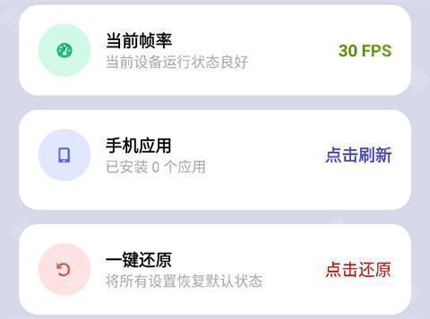 2、帧率设置、查看手机已安装应用、一键还原(将所有设置恢复默认状态)