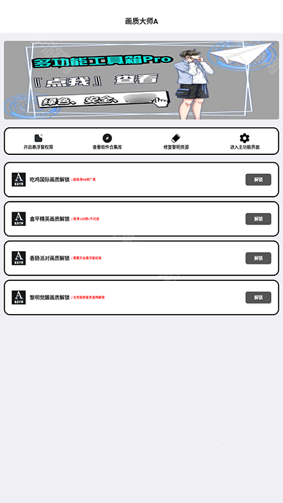 软件中无广告。你不用担心意外地点击广告。用户可以很容易地使用它。实现了多级画质改善方式,使玩家有了更多的画质选择。且功能分类详细,基本是一键操作,小巧绿色适合各种低端手机,千元机可体验终极游戏体验。