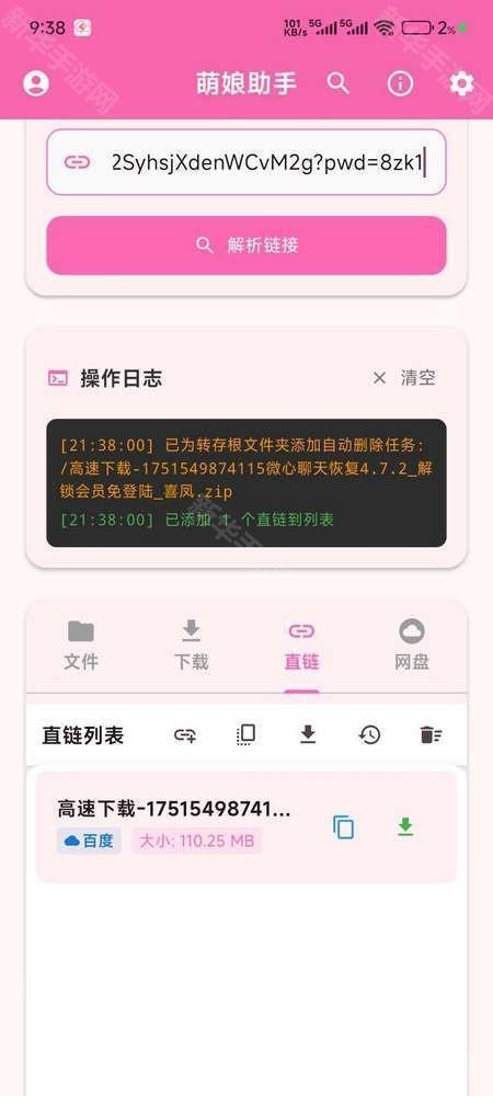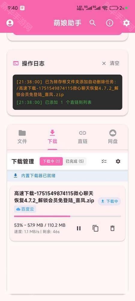 而且萌娘助手的操作方法也不难,就算我们是第一次使用也可以轻松上手。只需要将百度、夸克等网盘的分享链接复制粘贴到萌娘助手中解析即可,随后就可以极速下载链接中的文件了!