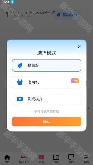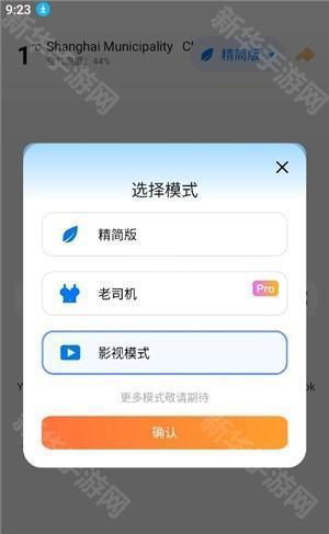 2.会弹出一个模式选择窗口。有影视模式和精简模式等