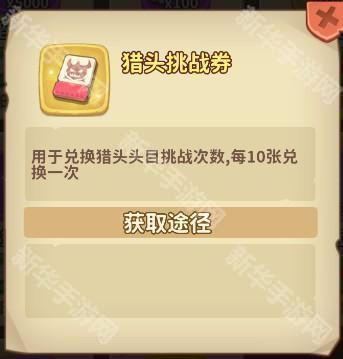 用于兑换猎头头目挑战次数,每10张兑换一次