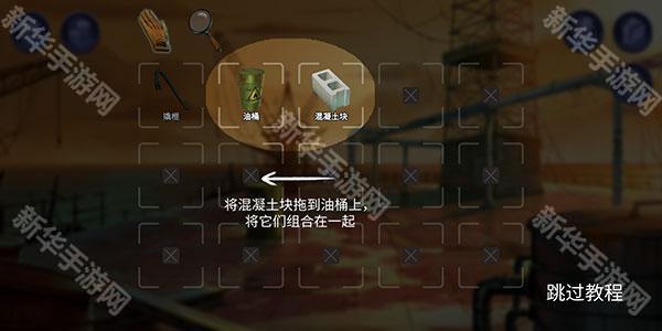 5、拾取【汽油桶】和【混凝土块】,打开物品栏,将混凝土块放入汽油桶。(拖动物品即可组合)