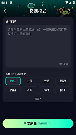 支持流行、说唱、电子、摇滚、爵士、古风等多种曲风选择。