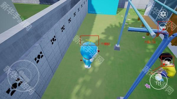4、如图所示点击哆啦a梦的万能口袋,我装备一个竹蜻蜓,右下角出现了一个fly的按钮,点击可以起飞;