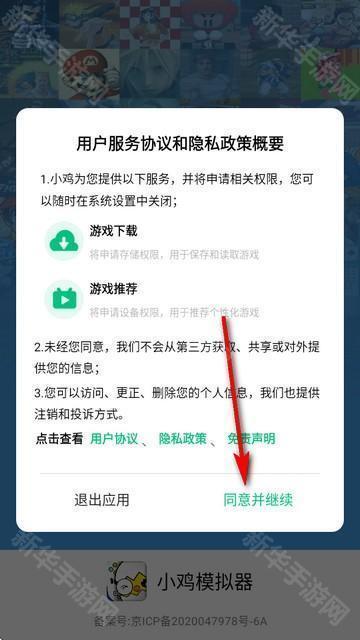 1、先在本站下载最新版本小鸡模拟器极速版安装好,打开后先同意协议和隐私政策。