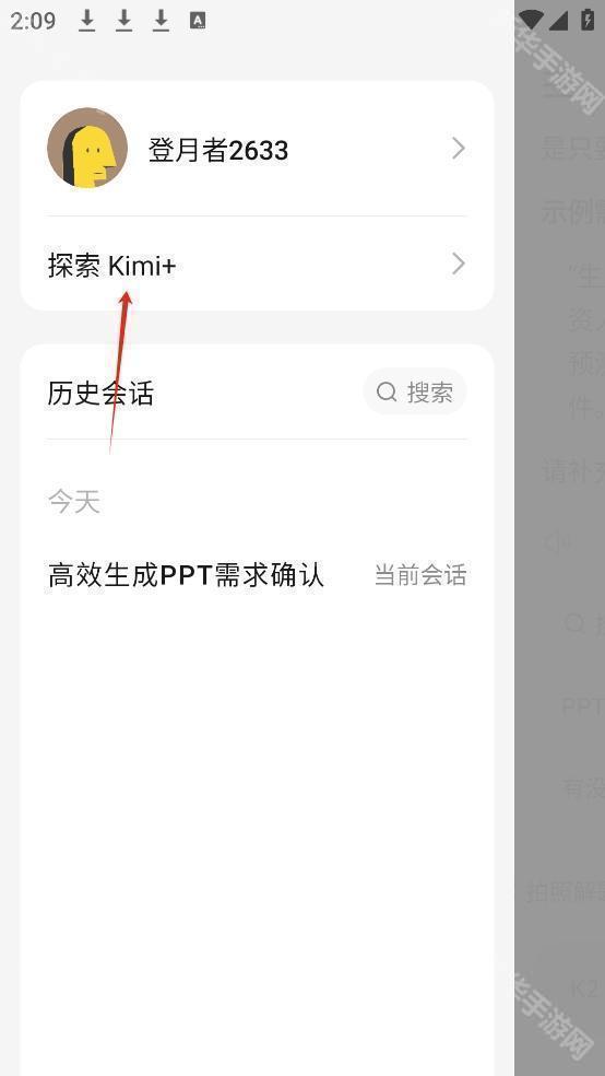 1、打开kimi智能助手应用,点击左上角的三道杠图标。