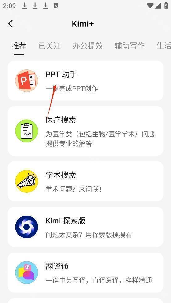 2、接着点击左侧的探索kimi+按钮,进入功能选择界面。