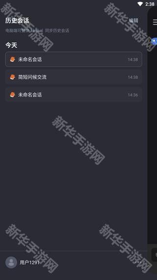 4、点击左上角“三”可打开菜单,查看历史对话,以及切换账号等。
