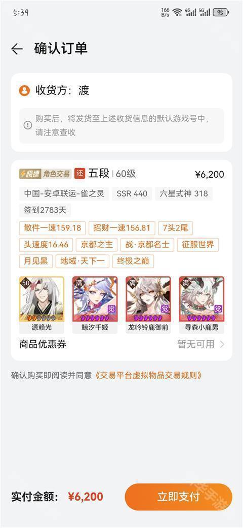 收费规则:例子:卖方以1200、3元出售一个角色。买方不收取任何信息交易费”支付1200、3元即可。