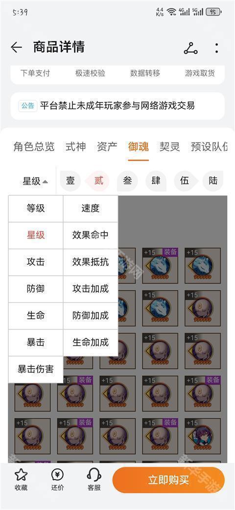 5、点击查看详细数据,功能跟藏宝阁一样,可以查看御魂等资产