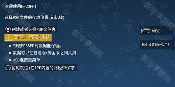 2、点击图标进入ppsspp模拟器黄金版来到下图所示界面,选择第一个选项并点击右侧确定按钮