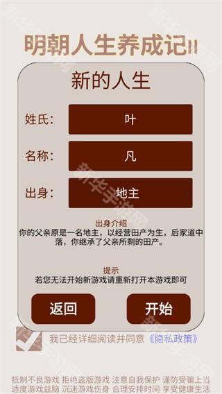 1、首先进入明朝人生养成记2游戏,点击新的人生;