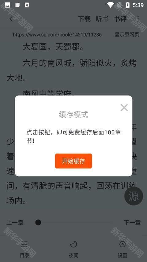 5、点击开始缓存即可进行小说/漫画的缓存和下载了!