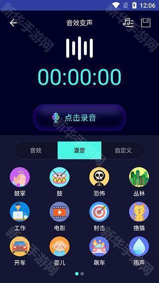 3、在录音功能中,用户可以选择音效、混音以及自定义;