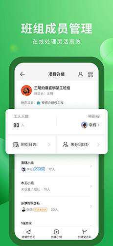 深度匹配建筑行业施工现场需求,无论是班组成员管理还是多项目协同,功能设计均贴合实际作业流程,实用性强。