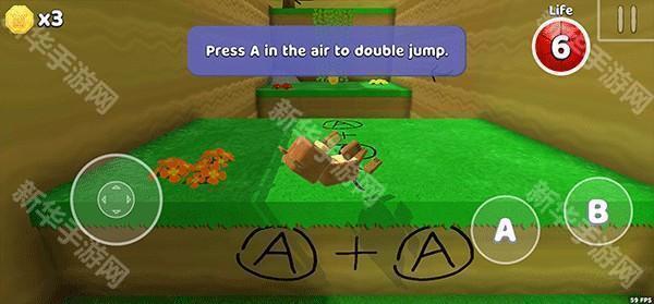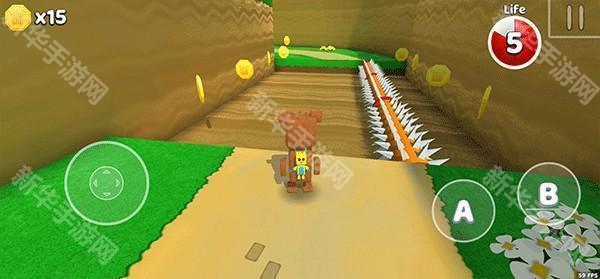 2、游戏中我们要做的就是操纵小熊去冒险,期间如果遇到高处或坑洼,连续点击两次A就可以跳上去