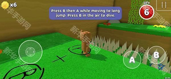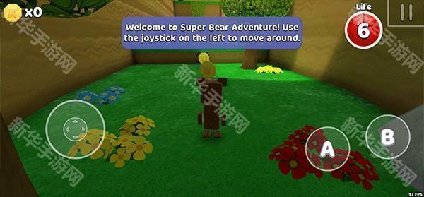 1、下载后打开进入游戏,左下角轮盘按钮控制超级熊自由移动,右侧屏幕滑动旋转视角,正常情况下A跳跃,B攻击
