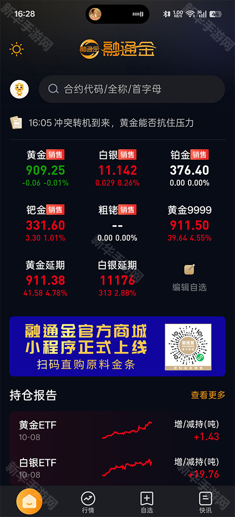 融通金是一款深圳市金正金珠宝首饰有限公司旗下的贵金属综合服务的软件,在这款软件内有着各种丰富的市场动态,用户可以根据的需要去了解数据信息,这样就能让你在黄金行业中的投资有所依据,帮助每一位用户们不出门就可以获得到大量的盈利,赚取到更多的收益。在这款软件内除了有着国内的资讯还会为用户提供黄金白银等贵金属的国内外报价,相当实用,感兴趣的用户就来本站下载吧。