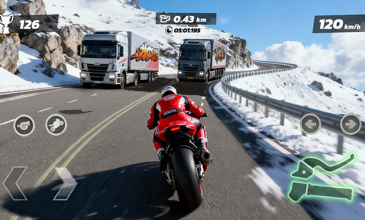 这个游戏让玩家能够体验极限竞速的乐趣,各种不同的摩托车任你选择,你能看到因为超速形成的模糊效果,避开朝你驶来的车辆,不同的赛道存在着不同的挑战。