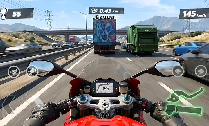 • 无尽模式 – 不停歇地骑行,在拥挤的高速公路上生存下来