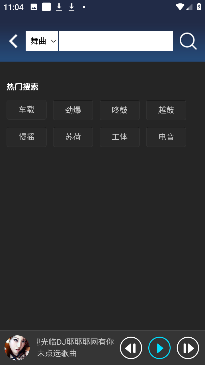 1、你可以点击上方的搜索快速找到dj歌曲。